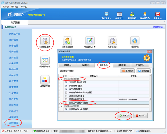 信管飞RMS软件、信管飞仓库管理软件、信管飞送货单软件等都支持设置操作员权限,以控制操作员登录软件所显示的功能,如公司需要限定操作员仅能查看和选择自己所属客户信息,软件中可以进行控制。