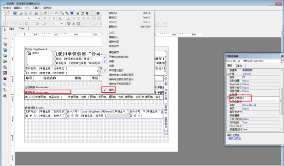 导航栏选择“业务处理”—》“新开订单”—》打印—》打印格式设计—》设计格式,进入打印模板的设计器界面,选中细项数据空白处,右键勾选显示属性,每页记录数内输入固定的数值,如下图所示: